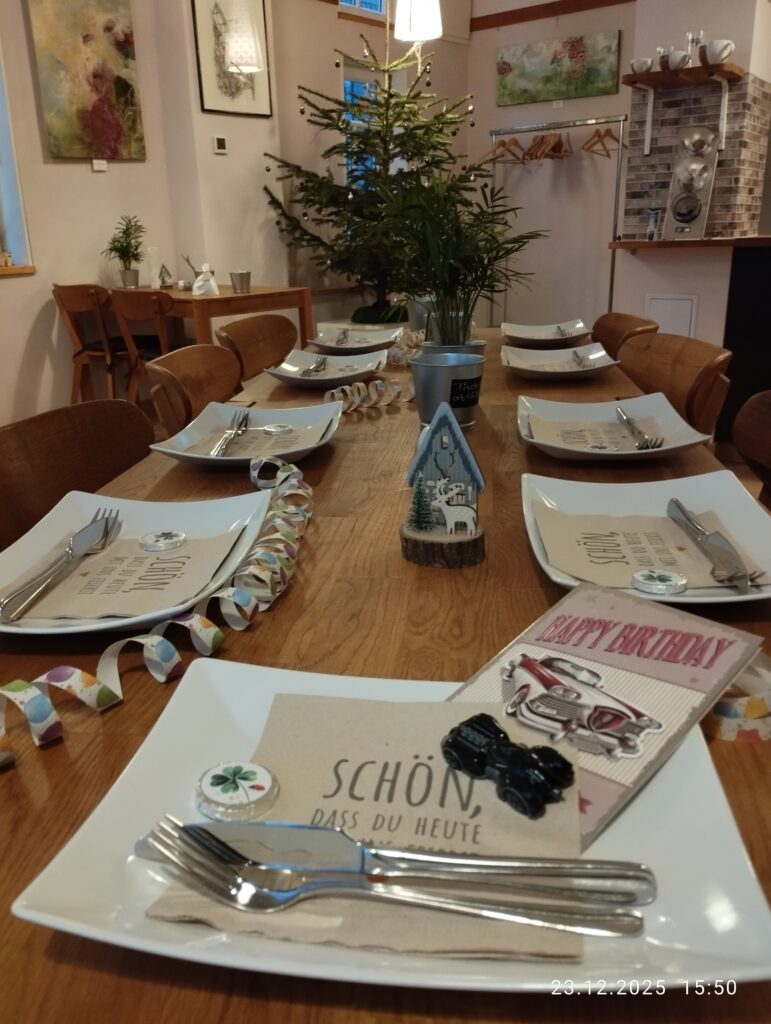 Wir haben wieder zwei kleine Feiern im Doppelpack in unserem Café gefeiert: ein Familientreffen zum Weihnachtsfrühstück, bei dem auch ein Geburtstagskind dabei war.